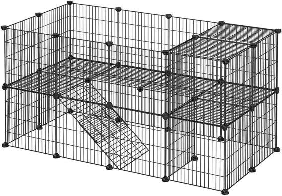 Kojec modułowy zagroda dla małych zwierząt gryzoni chomika świnki morskiej 2 poziomy czarny
