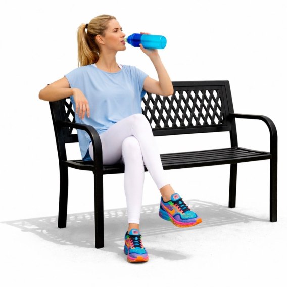 • Ławka ogrodowa z ażurowym oparciem 120x50 cm metalowa parkowa czarna MultiGarden