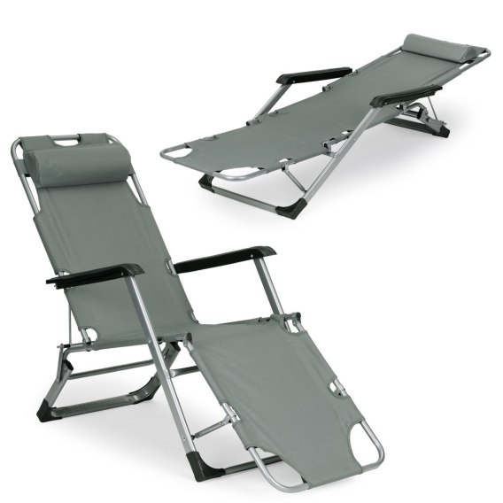 Leżak fotel ogrodowy plażowy składany 2w1 leżanka szary MultiGarden