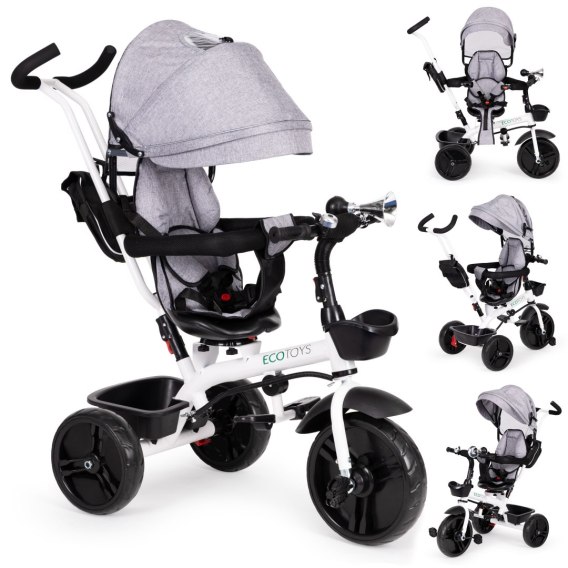 Rowerek trójkołowy obrotowy 360° szary z daszkiem ECOTOYS