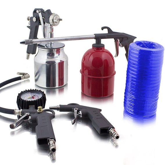 Zestaw akcesoriów do sprężarki 5 elementów to podstawowy zestaw niezbędny do pracy w domu, warsztacie. Jest niezastąpiony do lakierowania, precyzyjnego malowania, wielu rodzajów powierzchni, wygodnego i szybkiego pompowania, czyszczenia, mycia pod ciśnieniem, przedmuchiwania, łączenia urządzeń pneumatycznych.