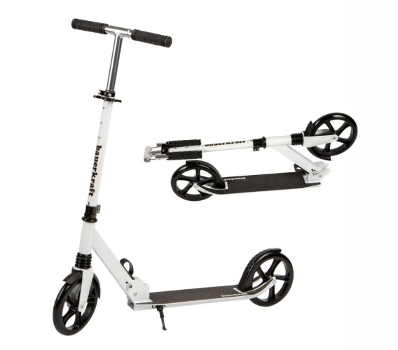 - Praktyczna nóżka pozwala bezpiecznie odstawić hulajnogę w dowolnym miejscu bez ryzyka przewrócenia.