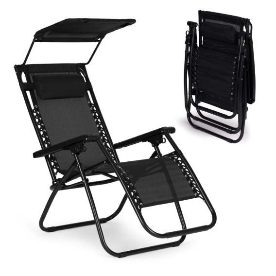 Leżak ogrodowy plażowy regulacja oparcia ruchomy daszek MultiGarden - czarny